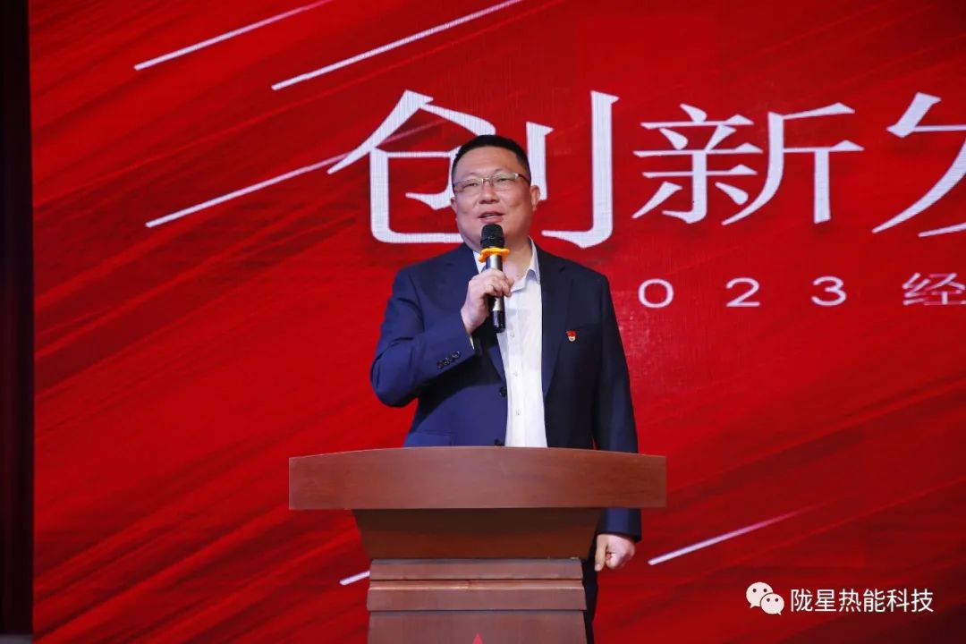 3月9日上午,隴星集團副總、隴星熱能科技公司總經理趙明珠先生在會上做了《創新發展 再創輝煌》主題演講,他從2023宏觀經濟環境、隴星公司的優勢、奪回失去的三年、難忘今宵四個方面進行了精彩的演講,讓現場所有的經銷商朋友對2023年的市場與銷售都充滿了信心和力量。