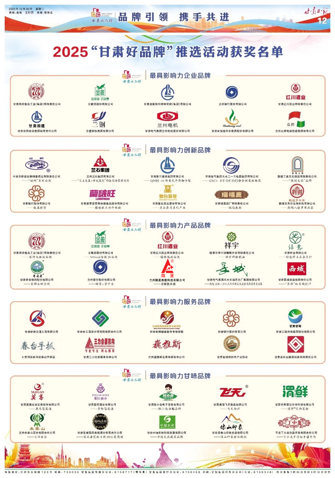 2025年12月30日,《甘肅日報》第11版、第12版以“品牌引領(lǐng)、攜手共進”為主題,刊發(fā)了2025“甘肅好品牌”推選活動獲獎名單。隴星品牌憑借其卓越的產(chǎn)品質(zhì)量、深厚的品牌積淀與廣泛的市場影響力,榮獲 “最具影響力產(chǎn)品品牌” 稱號。