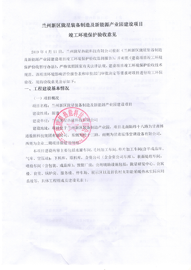 蘭州新區(qū)隴星裝備制作及新能源產(chǎn)業(yè)園建設(shè)項(xiàng)目竣工環(huán)境保護(hù)驗(yàn)收意見
